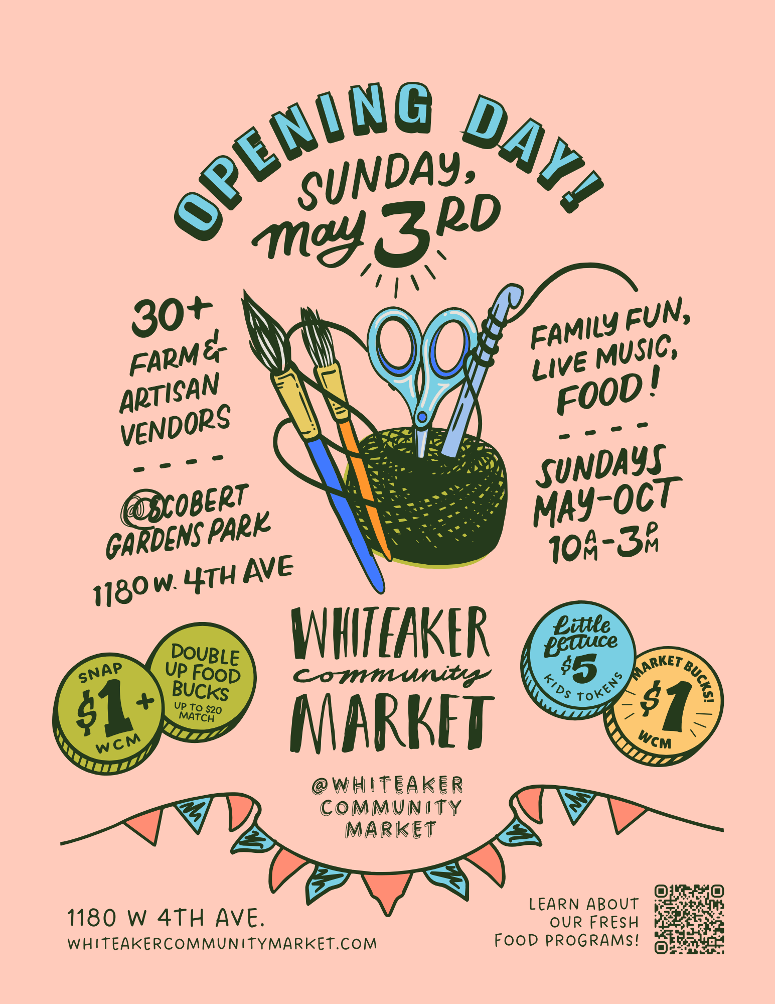 The Sunday market is our summer season market with over 30 artists, farmers, makers, growers, and food vendors and weekly live music. We’re open every Sunday from 10AM - 3PM, May - October, at Scobert Park in the Whiteaker Neighborhood.